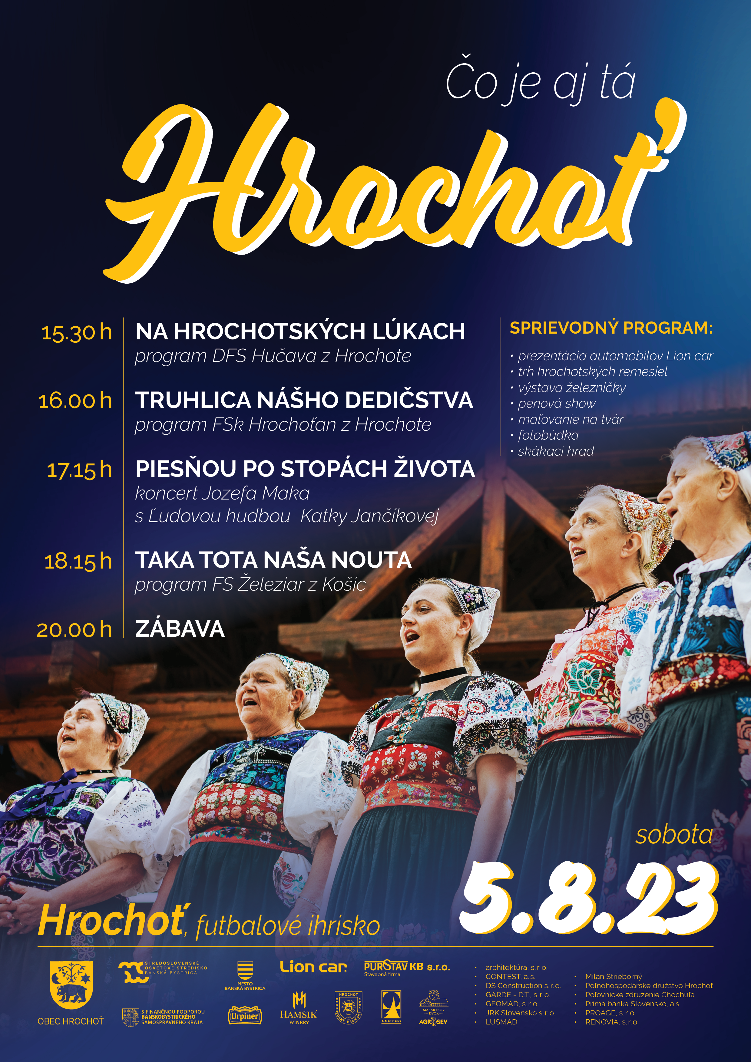 Kultúrne Podujatie: Čo je aj tá Hrochoť dňa 5.8.2023. Bližšie informácie v prílohe.